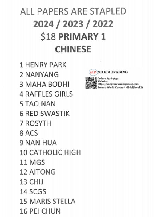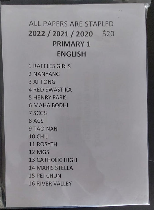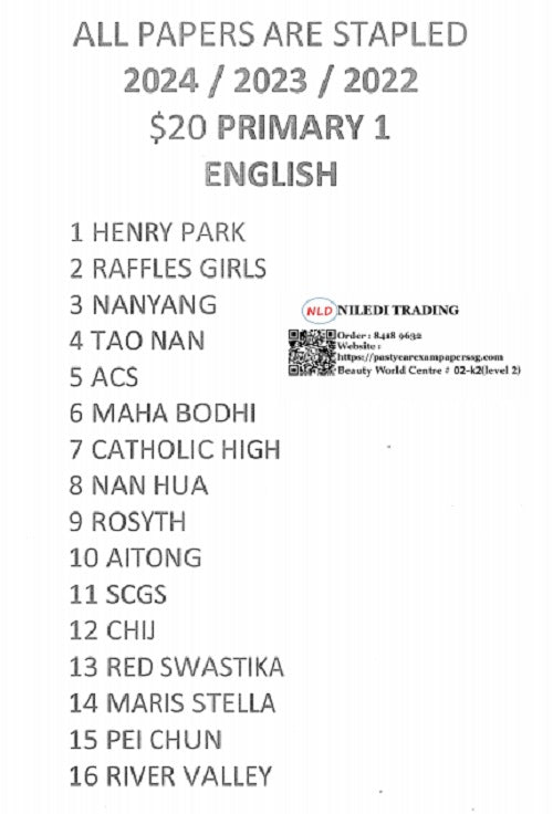 Primary 1 Past Year Exam Papers (2022-2024) – Hard Copy Downloads | Essential Study Materials free delivery
