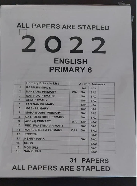 Primary 6 2022 Past Year Exam Papers (Hard Copy)